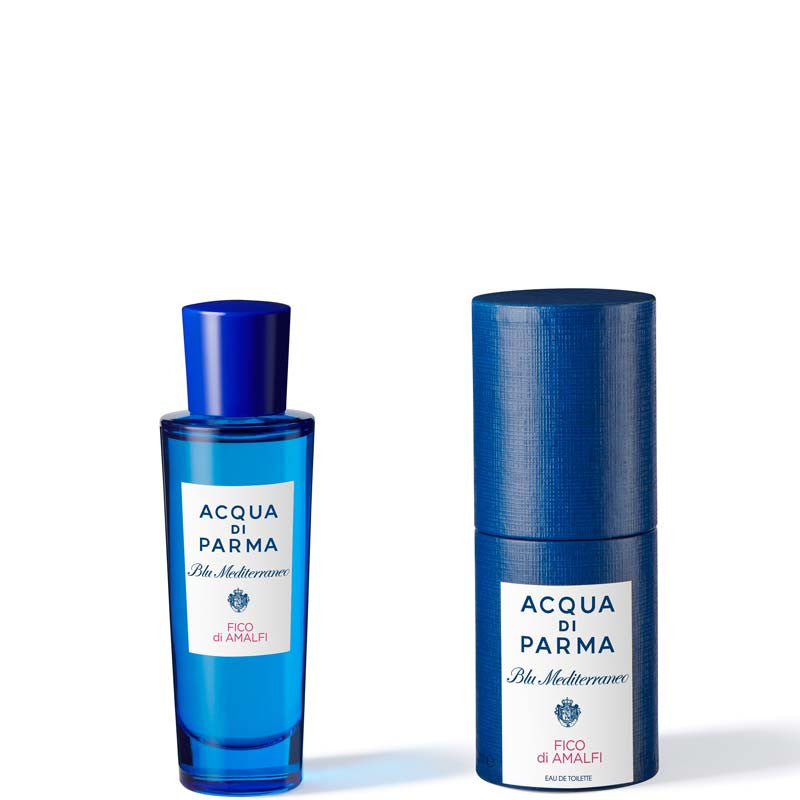 L'eau de toilette Blu Mediterraneo Fico di Amalfi si caratterizza per le vibranti note agrumate di bergamotto, limone, pompelmo e legno di cedro. Nel cuore della composizione gli accenti di fico si uniscono al pepe rosa e ad accordi di petali di gelsomino, mentre nel fondo si completano armoniosamente con il legno di cedro e il benzoino. Fico di Amalfi si presenta nell'inconfondibile flacone Acqua di Parma, icona Art Déco che, in vetro purissimo di un profondo tono di blu, in un gioco di riflessi, evoca la trasparenza del mare.