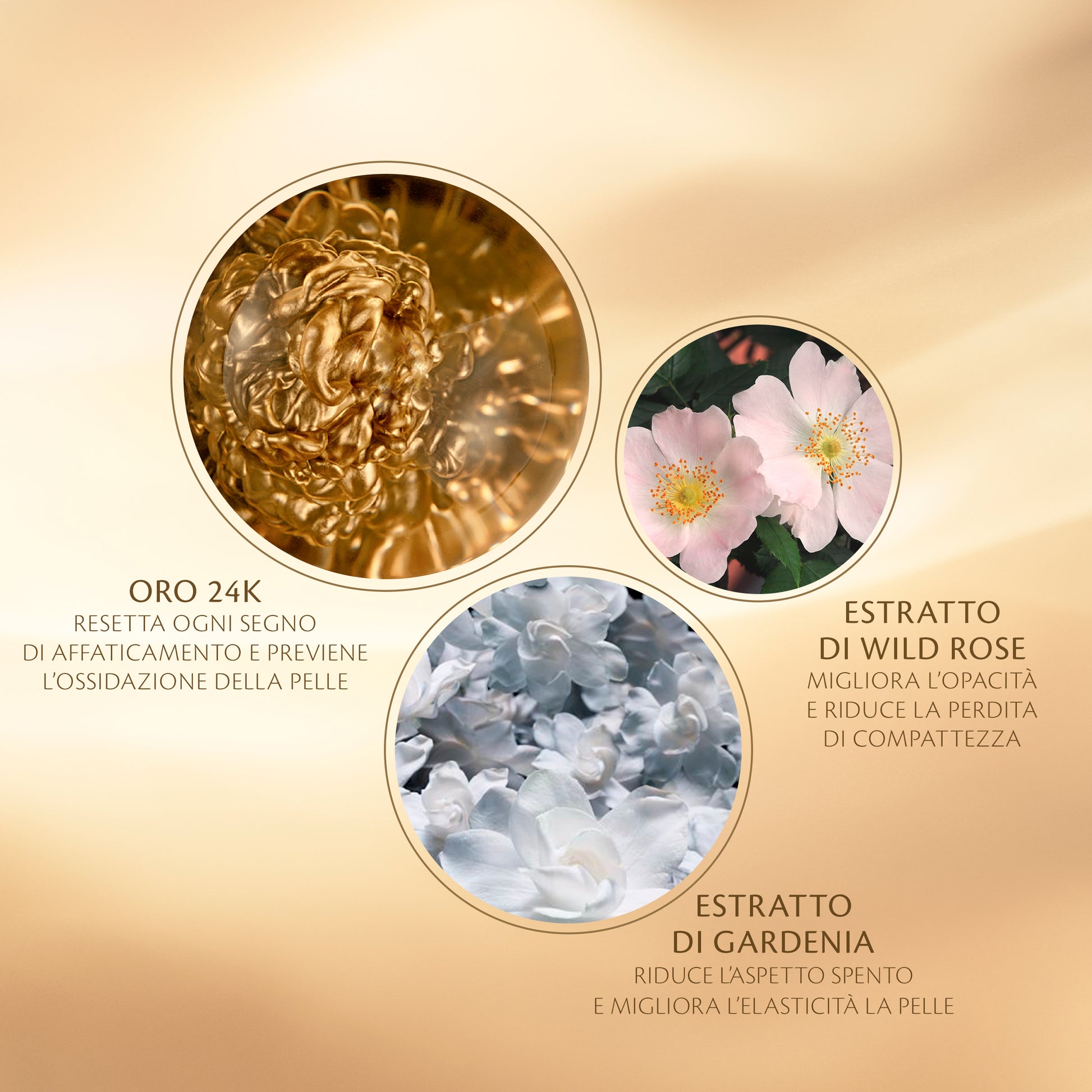 Oro prezioso: a lungo venerato per il suo potere di esaltare la bellezza. Stabilizzato, infuso in una lussuosa maschera da risciacquare che rivitalizza la pelle.