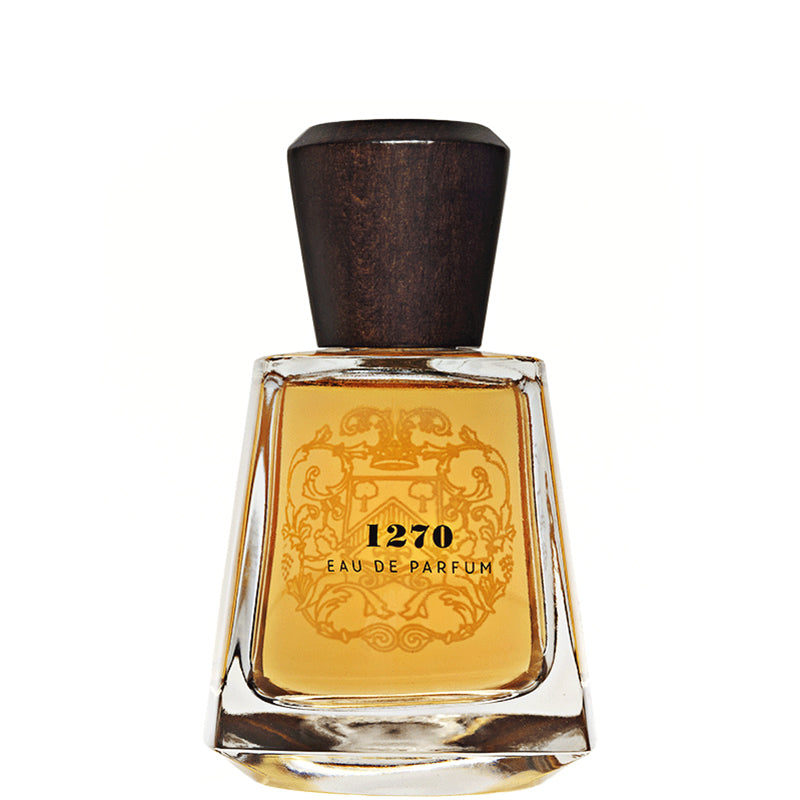 Frapin 1270: Ri-orchestrato da Sidonie Lancesseur nel 1270 riflette l'aroma del cognac con colori caldi che cambiano da oro ad ananas di colore arancione. Struttura olfattiva: Note di testa: arancia candita, nocciole, uvetta, prugne, Chicco di cacao, Tonka, Café. Note di cuore: Vite Fiori, Immortelle, calce, pepe, spezie. Note di fondo: legno pregiato, Gaiac legno, bianco miele, vaniglia.