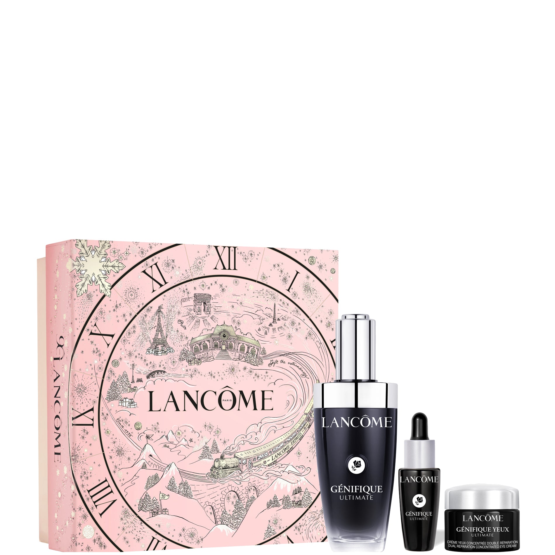 Queste festività natalizie, intraprendi uno straordinario viaggio da Parigi alla Felicità, la destinazione del nostro marchio dal 1935, e celebra 90 anni di magia. Allo scoccare della mezzanotte, il Lancôme Express inizia il suo leggendario viaggio à la française, portando con sé lo spirito delle feste, verso un paesaggio incantevole: un festival di regali in un magico paese delle meraviglie, che celebra il viaggio più indimenticabile dell'anno.