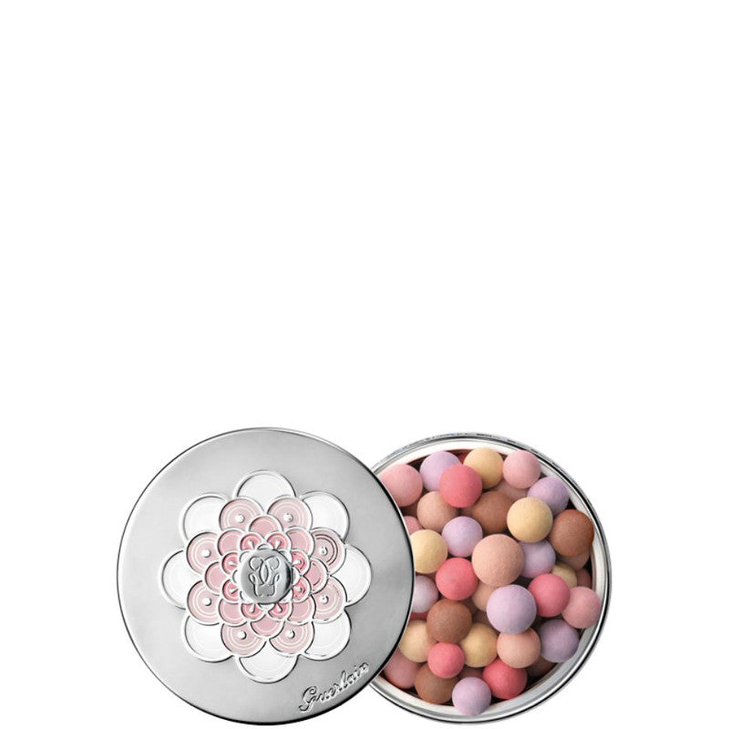Oggi le Météorites custodiscono il segreto della tecnologia Poussière d'Étoile – un polimero creatore di luce, che sulla pelle trasforma la luce invisibile a occhio nudo in una radiosità pura e infinita. Una delicata unione di perle bianche mat, rosate e dai riflessi azzurri e perle dai colori correttivi – giallo contro i rossori, rosa per un tocco di freschezza e malva per catturare la luce – accende il viso di un alone che corregge e illumina, per uno splendore senza fine. Applicare la poudre in modo uniforme su tutto il viso per fissare il make-up e migliorarne la tenuta. Per accentuare lo splendore, illuminare le zone sporgenti del viso. Disegnare una G dal centro della fronte verso la parte alta degli zigomi, poi dal setto nasale verso il mento.
