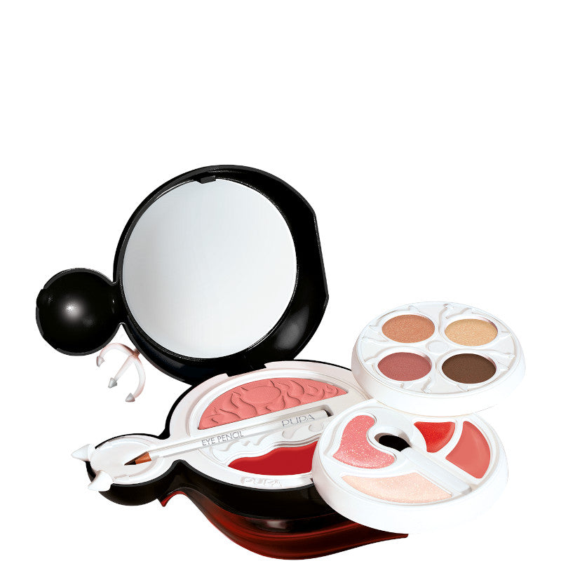 Blush e ombretti compatti dal tocco setoso per un’infinità di look sempre diversi. La matita nera per uno sguardo profondo.