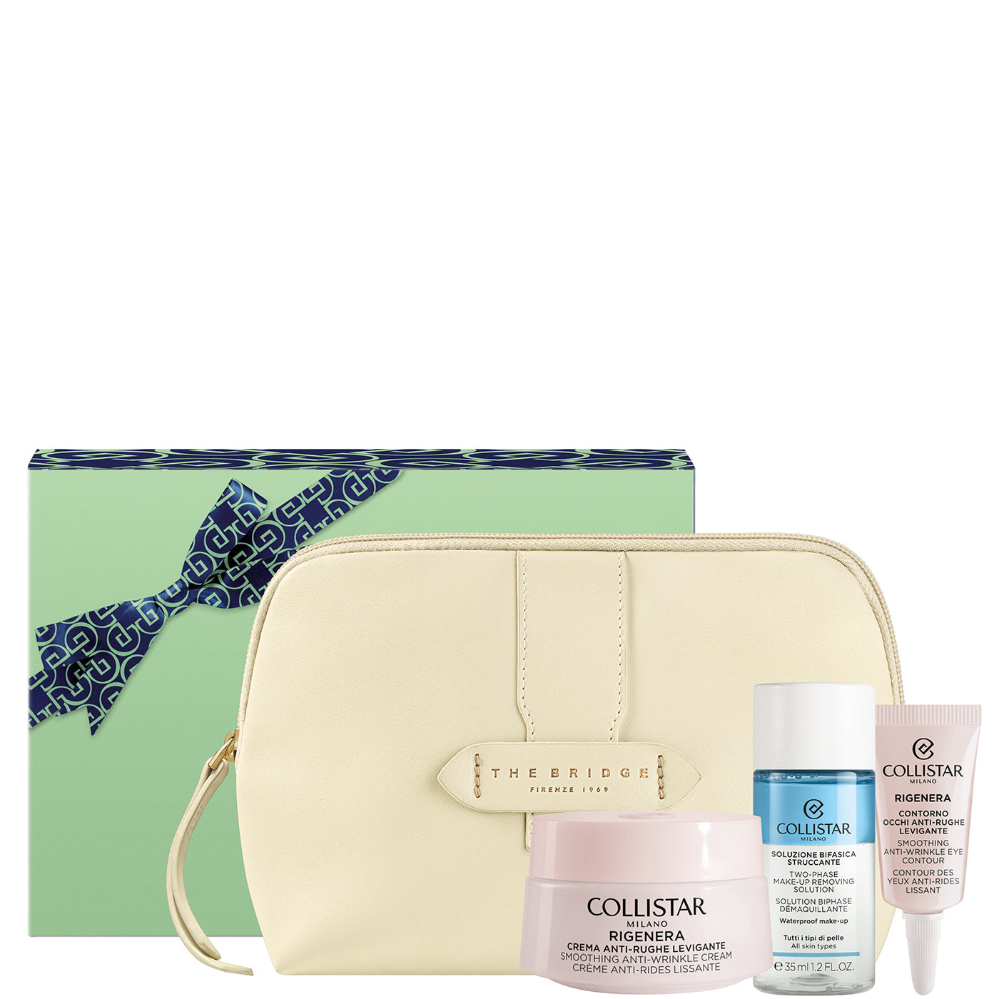 The Bridge, eccellenza della pelletteria italiana, firma le esclusive Beauty-Bag dei cofanetti regalo Collistar. Le trousse dal design elegante ed essenziale sono abbinate ai prodotti Collistar più amati: scegli la tua combinazione tra le proposte delle linee Trucco, Viso, Corpo e Uomo.
