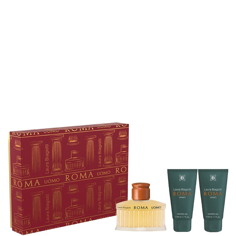 La confezione comprende il 75 ML Roma Uomo Eau de Toilette e 2 X 50 ML Shower Gel.