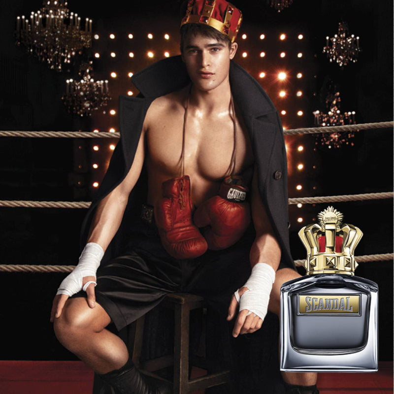 Eleganza scattante e guantoni da boxe in pugno, il nuovo SCANDAL POUR HOMME di Jean Paul Gaultier sferra il colpo decisivo con un'Eau de Toilette energizzante e coinvolgente. Coronato di vittorie, questo re del ring seduce i suoi fan con una mascolinità enigmatica, con un intenso profumo legnoso e ambrato e un flacone ricaricabile che mette tutti al tappeto.